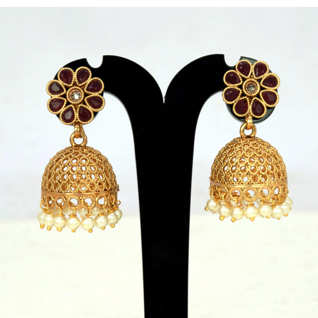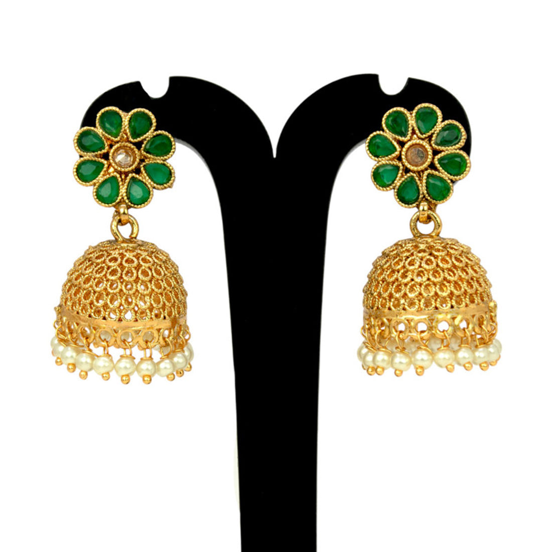 एंटीक मैट फ्लोरल स्टोन झुमका विद पर्ल डैंगलर्स एक बेहद ट्रेंडी पार्टी वियर ज्वेलरी है। इन खूबसूरत झुमकी इयररिंग्स में एक जटिल डिज़ाइन, रूबी/पन्ना स्टोन फ्लोरल स्टड और सफ़ेद मोती की लटकन है। यह किसी भी त्यौहार और शादी के अवसर पर किसी भी आउटफिट के साथ आपकी खूबसूरती को एक क्लासिक और ट्रेंडी लुक देगा।