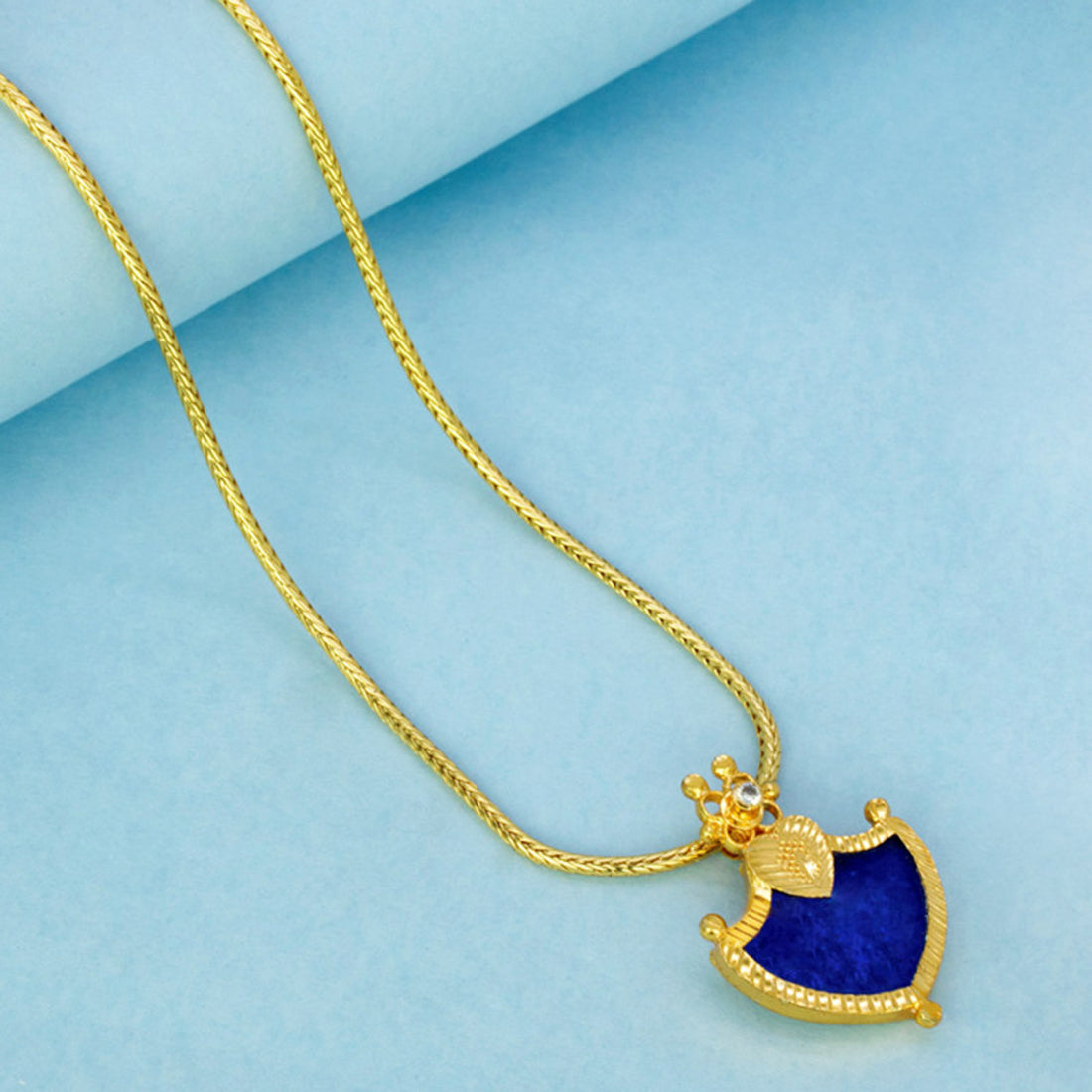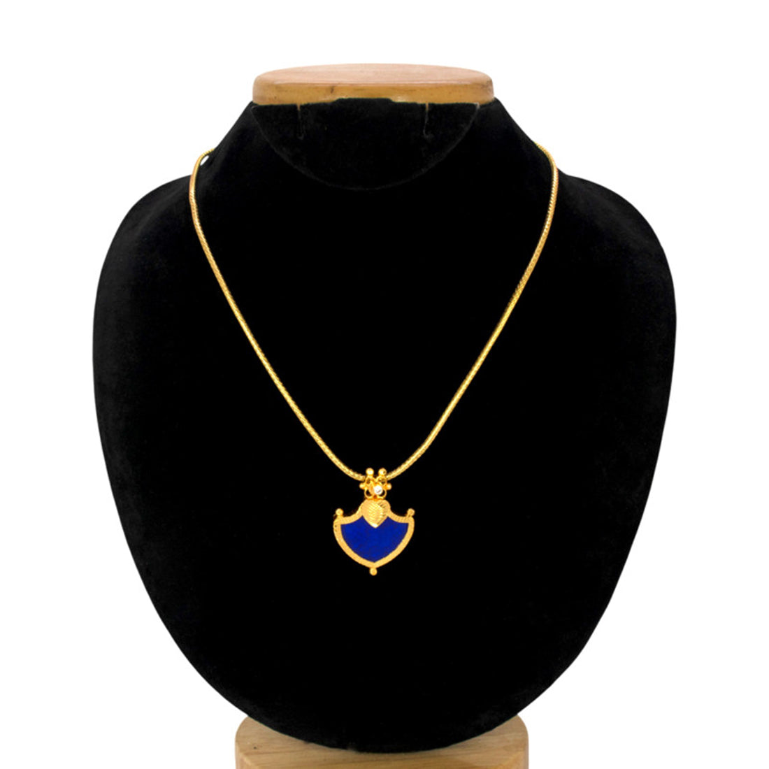 महिलाओं के लिए पारंपरिक केरल शैली का बड़ा गोल्ड प्लेटेड नीला पालका पेंडेंट। यह दक्षिण भारतीय आभूषण मंदिर में पहनने, त्योहारों और पारंपरिक लुक के लिए एकदम सही है। इसे साड़ी या पारंपरिक परिधानों के साथ पहनकर एक पारंपरिक स्पर्श पाएँ।