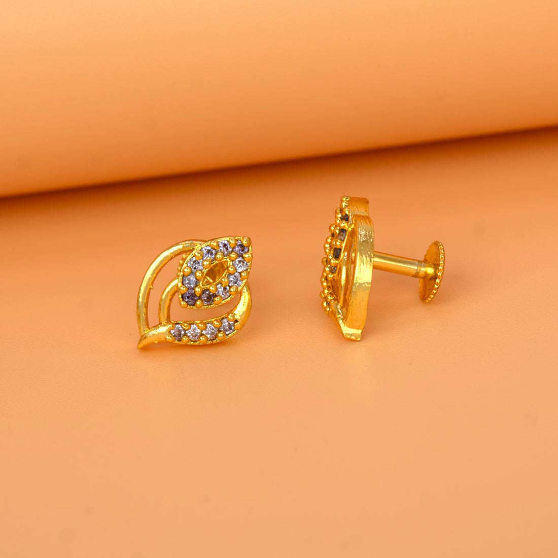 खूबसूरत डिज़ाइनर गोल्ड प्लेटेड स्टोन इयर स्टड, जो खूबसूरत पत्तियों के डिज़ाइन में बने हैं और चमकदार पत्थरों से सजे हैं। रोज़ाना पहनने या खास मौकों के लिए बिल्कुल सही, ये इयररिंग्स आपके लुक में चार चाँद लगा देंगे। ये कैज़ुअल और पार्टी वियर इयररिंग्स मदर्स डे जैसे खास मौकों पर एक खूबसूरत तोहफ़ा हैं।