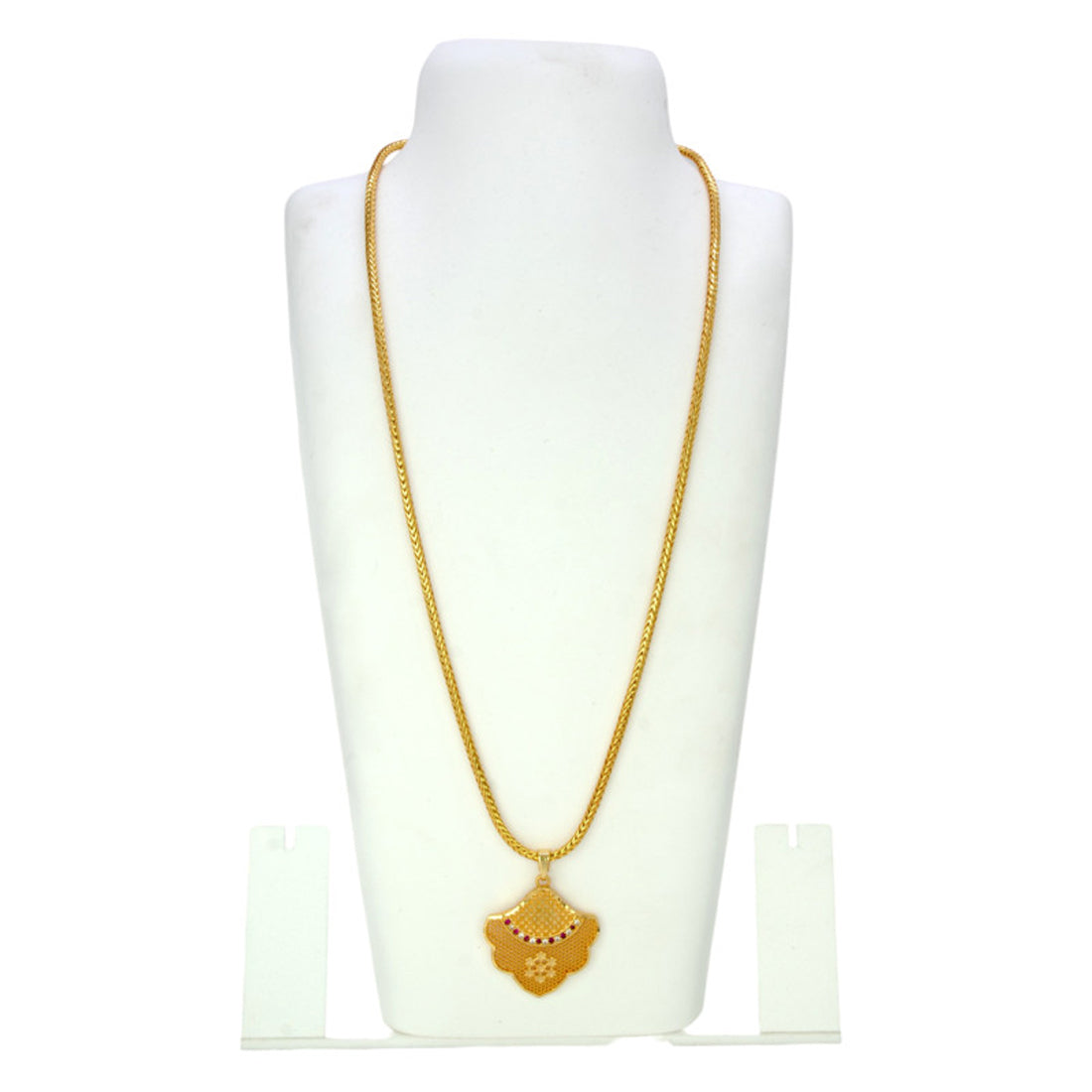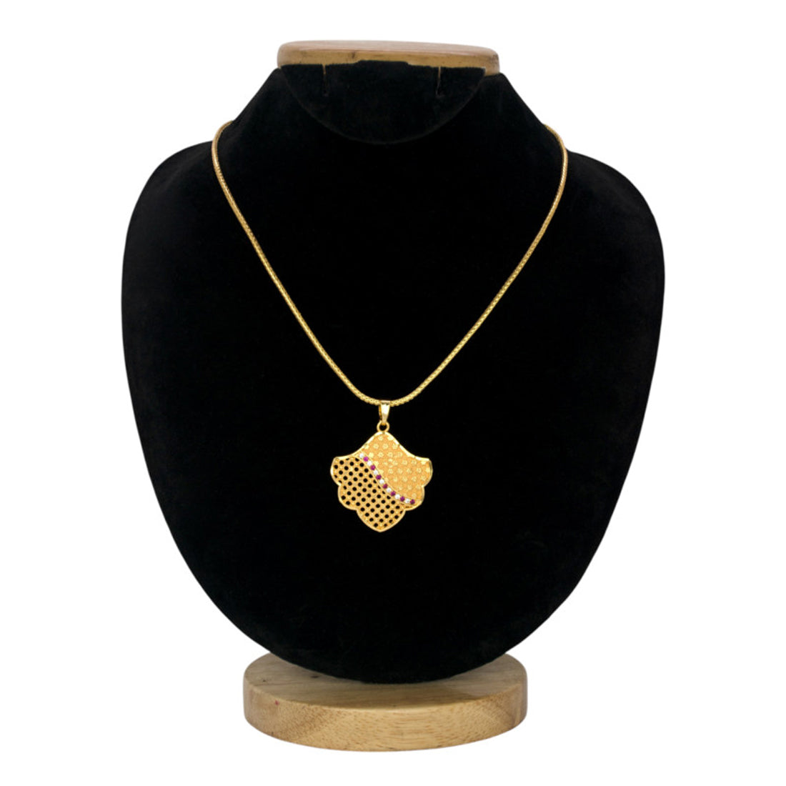 महिलाओं के लिए रूबी सीज़ेड मैट पेंडेंट वाली गोल्ड प्लेटेड डिज़ाइनर चेन, पारंपरिक कलात्मकता और आधुनिक शान का एक उत्कृष्ट नमूना है। छोटे रूबी और सीज़ेड स्टोन से सजी डिज़ाइनर पेंडेंट वाली यह चिकनी गोल चेन। यह खूबसूरत नेकपीस पारंपरिक अवसरों, मंदिर में पहनने के लिए, या एथनिक परिधानों के साथ एक बेहतरीन एक्सेसरी के रूप में एकदम सही है।