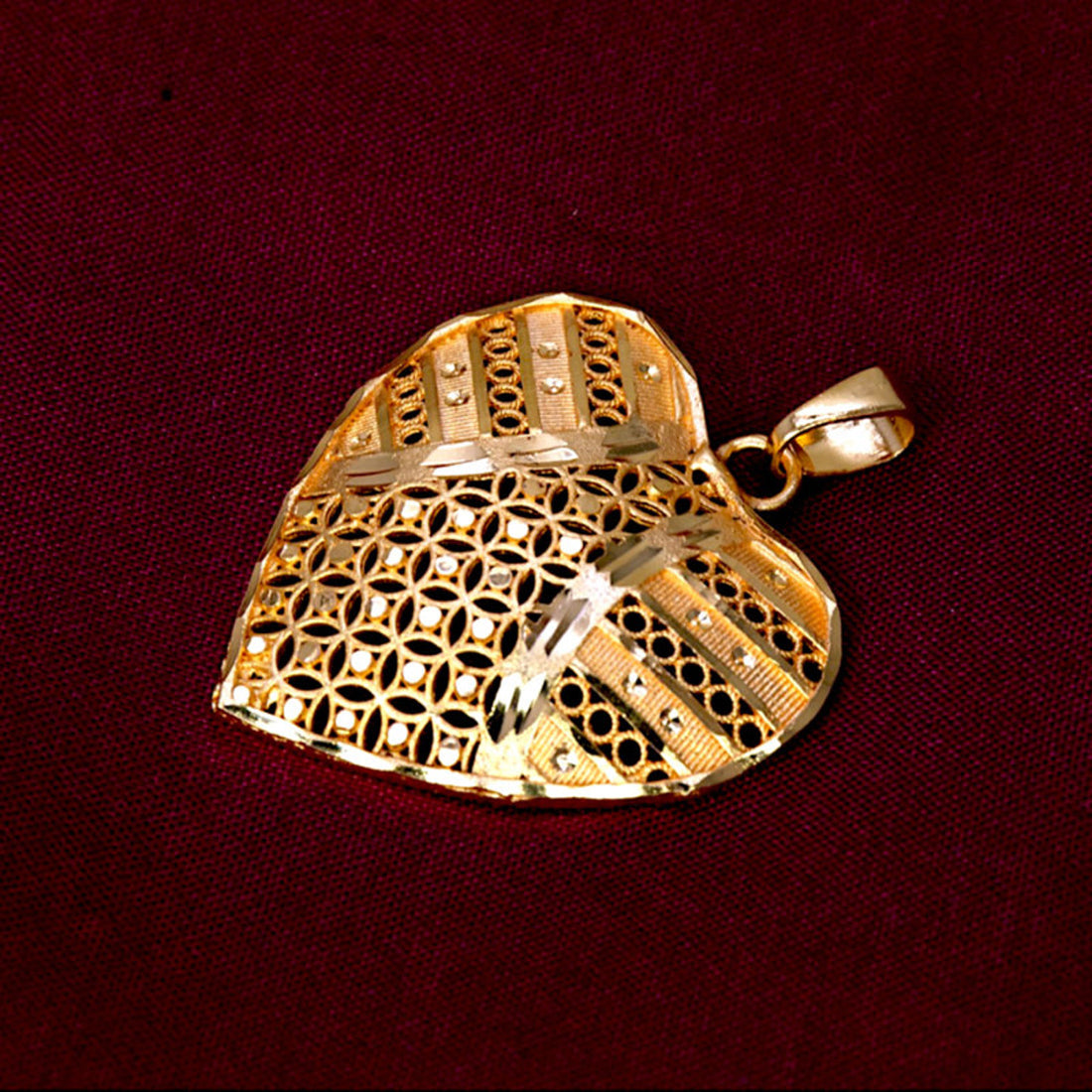 സ്വർണ്ണം പൂശിയ ഒരു ലളിതമായ ഹൃദയ പെൻഡന്റ്. ഈ ഭംഗിയുള്ള സ്വർണ്ണം പൂശിയ ഡിസൈനർ ഹാർട്ട് പെൻഡന്റ്, ദൈനംദിന ഉപയോഗത്തിനോ ഇടയ്ക്കിടെയോ ഉപയോഗിക്കാവുന്ന ഏത് ലളിതമായ ചെയിനുകളുമായും ജോടിയാക്കാം. വാലന്റൈൻസ് ഡേ അല്ലെങ്കിൽ ജന്മദിനം പോലുള്ള അവസരങ്ങളിൽ പെൺകുട്ടികൾക്ക് ഒരു മികച്ച സമ്മാനം.