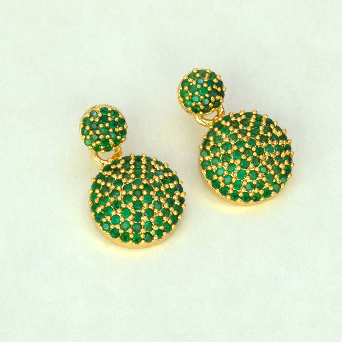 പച്ച: പൊരുത്തപ്പെടുന്ന വൃത്താകൃതിയിലുള്ള ഫ്രെയിമിൽ സജ്ജീകരിച്ച തിളങ്ങുന്ന മരതകപ്പച്ച കല്ലുകൾ.