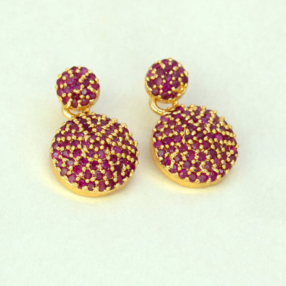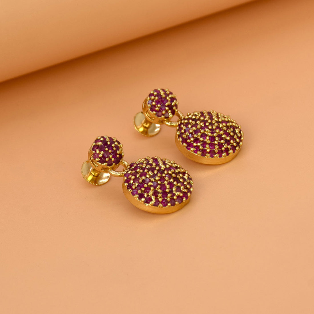 എലഗന്റ് ഗോൾഡ് പ്ലേറ്റഡ് ഡിസ്ക് സ്റ്റോൺ ഡ്രോപ്പ് കമ്മലുകൾ സമ്പന്നമായ റൂബി, എലഗന്റ് സ്റ്റോൺ വേരിയന്റുകളിൽ ലഭ്യമാണ്. പ്രത്യേക അവസരങ്ങളിൽ സമ്മാനമായി നൽകാവുന്ന മികച്ച തിരഞ്ഞെടുപ്പാണ് ഈ കമ്മലുകൾ. അവയുടെ കാലാതീതമായ സൗന്ദര്യവും വൈവിധ്യവും അവയെ ഏതൊരു ആഭരണ ശേഖരത്തിനും അനുയോജ്യമായ ഒരു കൂട്ടിച്ചേർക്കലാക്കി മാറ്റുന്നു.