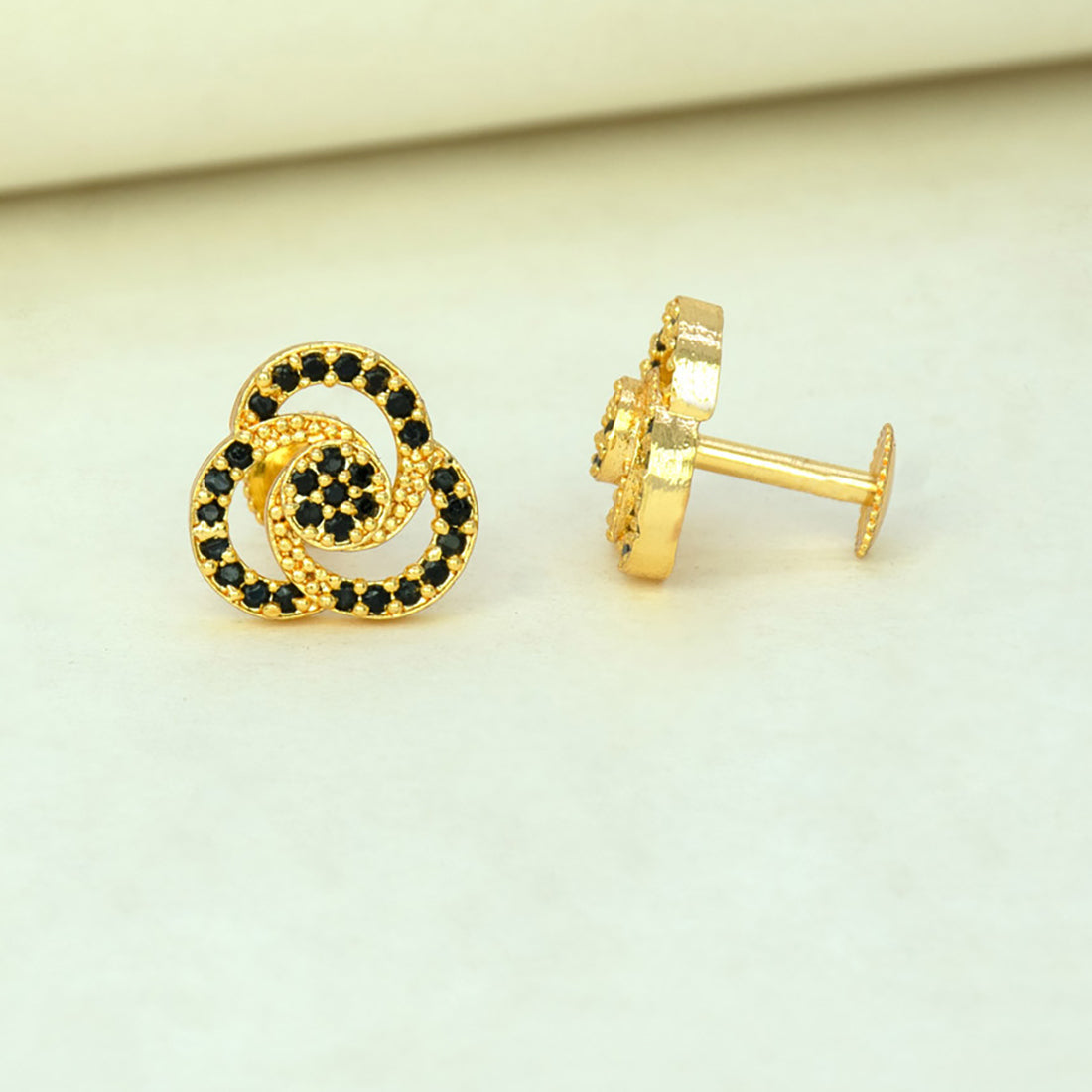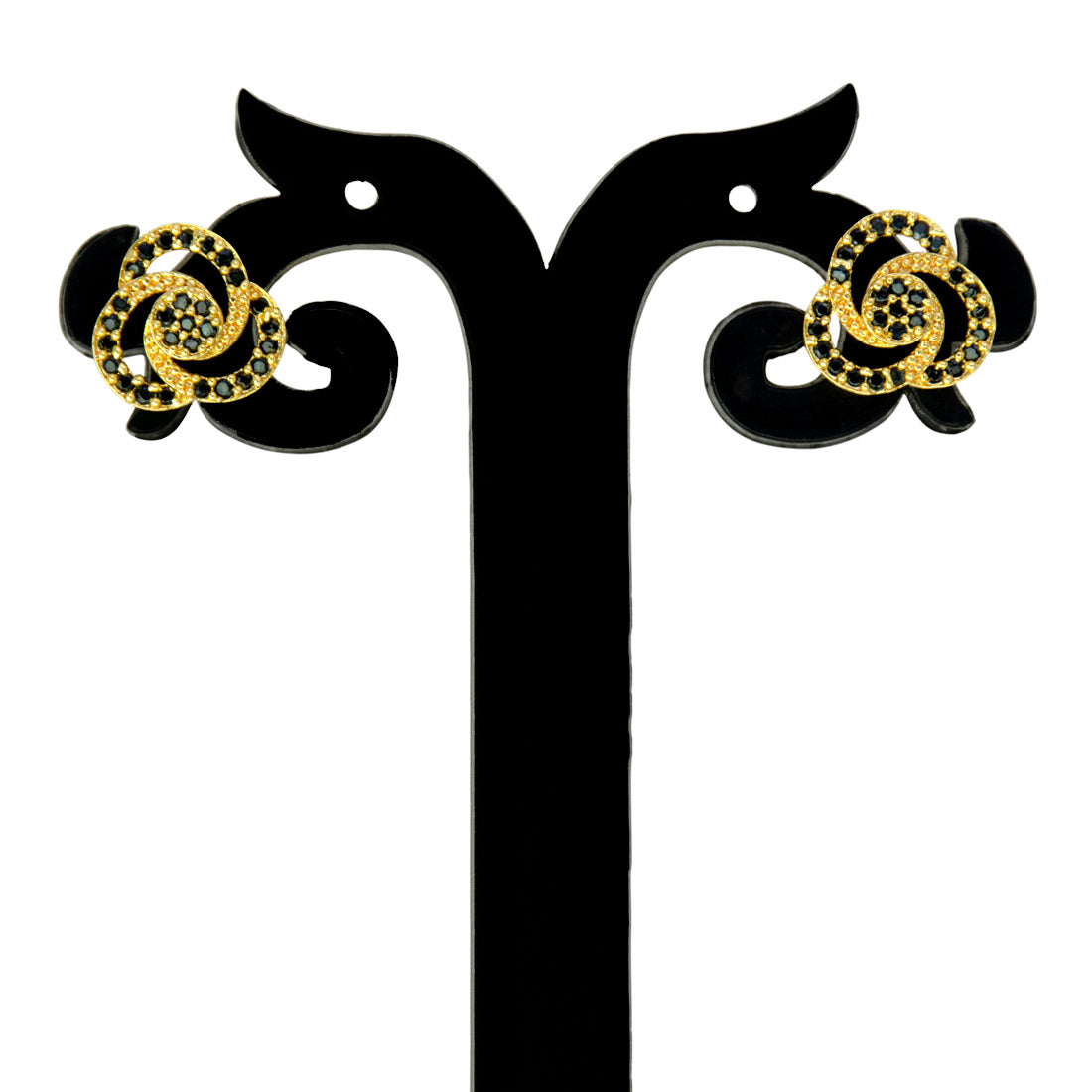 സ്വർണ്ണം പൂശിയ കറുത്ത CZ പുഷ്പ സ്വിൽ സ്റ്റഡ് കമ്മലുകൾ തിളങ്ങുന്ന കറുത്ത CZ കല്ലുകൾ കൊണ്ട് അലങ്കരിച്ചിരിക്കുന്നു. ഭംഗിയുള്ളതും ഭാരം കുറഞ്ഞതും ദൈനംദിന വസ്ത്രങ്ങൾക്കോ പ്രത്യേക അവസരങ്ങൾക്കോ അനുയോജ്യവുമാണ്. പെൺകുട്ടികൾക്കുള്ള സമ്മാന ഇനം.