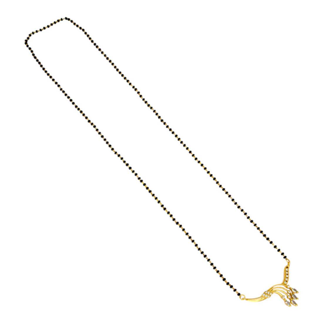 സ്ത്രീകൾക്കുള്ള എലഗന്റ് ഗോൾഡ് പ്ലേറ്റഡ് CZ സ്റ്റോൺ പെൻഡന്റ് കരിമണി മാല/മംഗൾ സൂത്ര. സ്വർണ്ണ ഫിനിഷുള്ള CZ പെൻഡന്റ്, കാഷ്വൽ, ഉത്സവ അവസരങ്ങൾ, വിവാഹങ്ങൾ അല്ലെങ്കിൽ ക്ഷേത്ര സന്ദർശനങ്ങൾക്ക് അനുയോജ്യമാക്കുന്നു. ഒരു ക്ലാസിക് കരിമണി മാല (കറുത്ത ബീഡ്ഡ് ചെയിൻ) ശൈലിയിൽ രൂപകൽപ്പന ചെയ്ത ഈ നെക്ലേസ് പാരമ്പര്യത്തെയും ചാരുതയെയും മനോഹരമായി സംയോജിപ്പിക്കുന്നു.