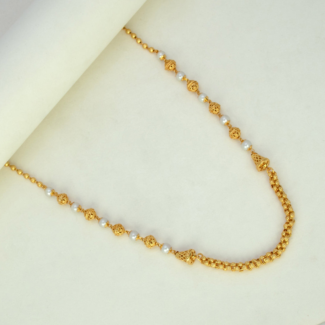 ഫിലിഗ്രി ബീഡുകളും വെളുത്ത മുത്തുകളും ഉള്ള സ്വർണ്ണം പൂശിയ ഫിലിഗ്രി ബീഡ് പേൾ നെക്ലേസ്. ഉത്സവ വസ്ത്രങ്ങൾ, പാർട്ടികൾ, സമ്മാനങ്ങൾ എന്നിവയ്ക്ക് അനുയോജ്യം. നിങ്ങളുടെ ലുക്കിന് കാലാതീതമായ ചാരുത നൽകുന്നതിന് നിങ്ങളുടെ പ്രിയപ്പെട്ട സാരിയുമായോ ലെഹങ്കയുമായോ ഇത് ജോടിയാക്കുക.