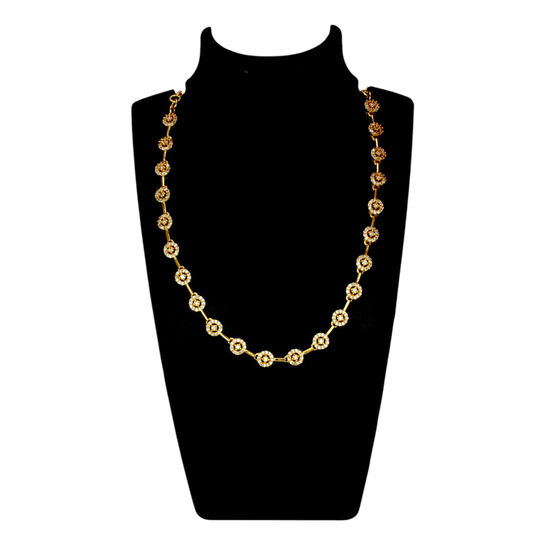 പെൺകുട്ടികൾക്കും സ്ത്രീകൾക്കും വേണ്ടിയുള്ള അത്ഭുതകരമായ സ്വർണ്ണം പൂശിയ വൃത്താകൃതിയിലുള്ള കല്ല് നെക്ലേസ്. ഇതിന് ക്രമീകരിക്കാവുന്ന ലിങ്ക് ചെയിൻ ഉണ്ട്. വൃത്താകൃതിയിലുള്ള റൂബി/സിസെഡ് കല്ലുകളുടെ രൂപകൽപ്പന ഈ നെക്ലേസിന് ഒരു മിന്നുന്ന രൂപം നൽകുന്നു, കൂടാതെ ഒരു പാർട്ടിയിലോ വിവാഹ വേളയിലോ എല്ലാവരുടെയും ശ്രദ്ധ ആകർഷിക്കുകയും ചെയ്യും. വാർഷികം, ജന്മദിനം, വാലന്റൈൻസ് ദിനം അല്ലെങ്കിൽ ക്രിസ്മസ് പോലുള്ള ശുഭകരമായ പരിപാടികളിൽ നിങ്ങളുടെ പ്രിയപ്പെട്ടവർക്ക് ഒരു മനോഹരവും സ്മാർട്ട് സമ്മാനവും.