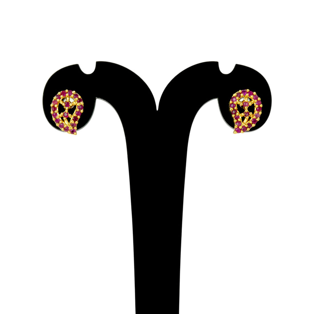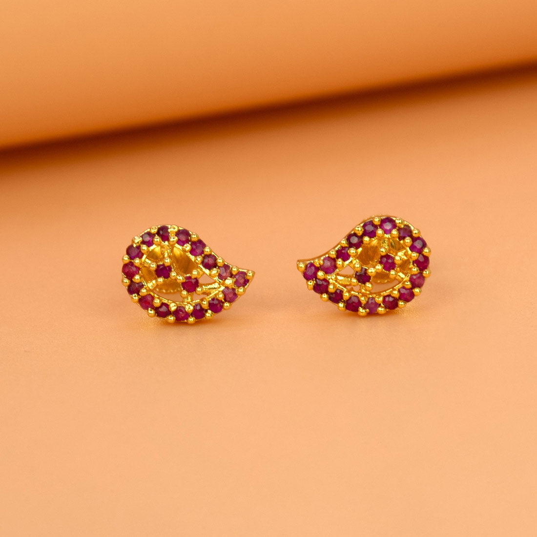 പെൺകുട്ടികൾക്കും സ്ത്രീകൾക്കും വേണ്ടിയുള്ള അതിശയകരമായ സ്വർണ്ണം പൂശിയ റൂബി സ്റ്റോൺ മാംഗോ പെയ്സ്ലി ഇയർ സ്റ്റഡുകൾ. എത്നിക്, വധു, ഉത്സവ അവസരങ്ങൾക്ക് അനുയോജ്യമായ റൂബി സ്റ്റോൺ പതിച്ച മാമ്പഴ ഡിസൈൻ കമ്മലുകൾ. സ്ക്രൂ ടൈപ്പ് ബാക്ക്.