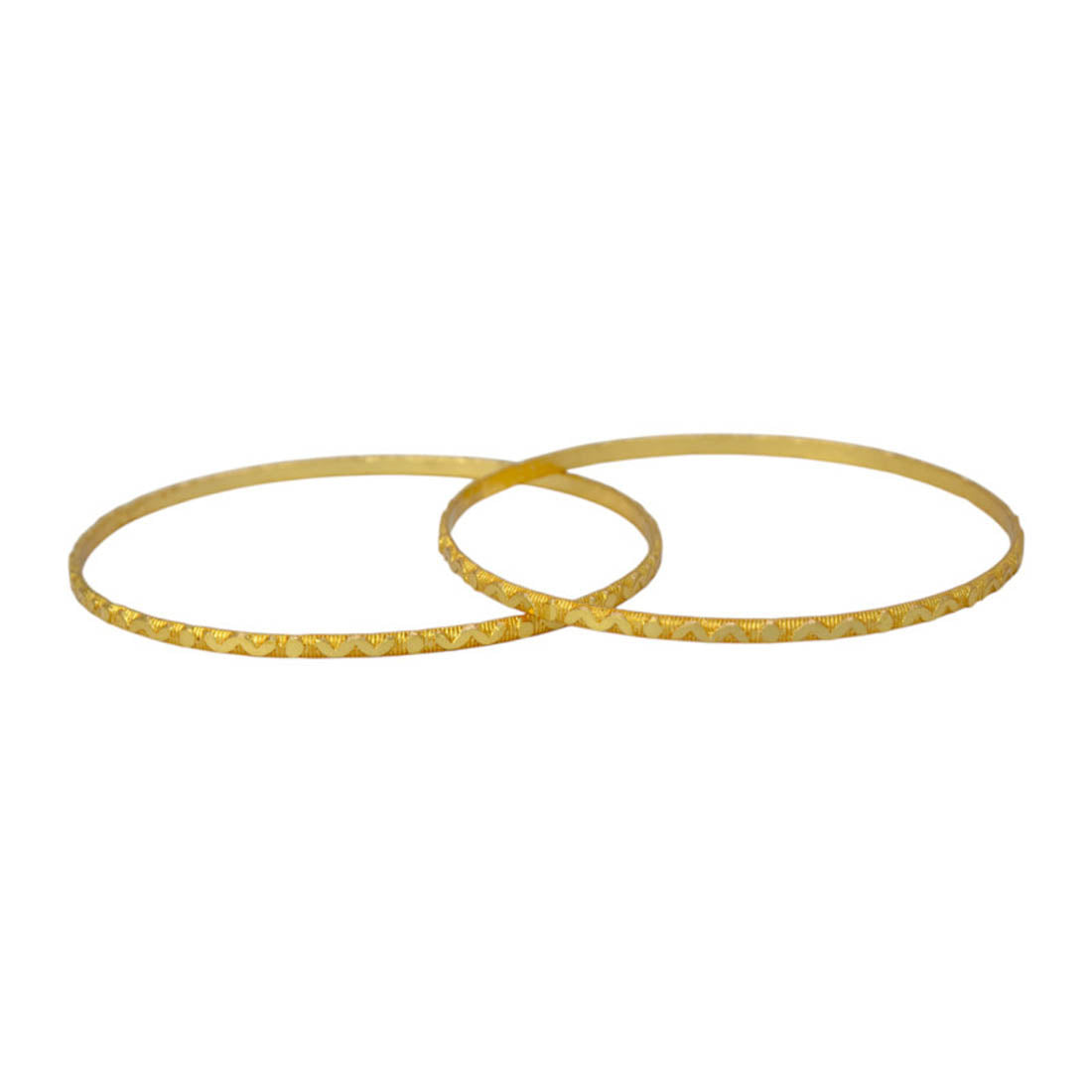 സ്ത്രീകൾക്കുള്ള ട്രെൻഡി ഗോൾഡ്-പ്ലേറ്റഡ് വേവി പാറ്റേൺ വളകൾ. ആധുനിക സ്പർശമുള്ള മനോഹരമായ ഡിസൈനർ ആഭരണങ്ങൾ. ഈ ജനപ്രിയ വളകൾ സാരികൾക്കും മറ്റ് പരമ്പരാഗത വസ്ത്രങ്ങൾക്കും ജോഡി അല്ലെങ്കിൽ സെറ്റായി അനുയോജ്യമാണ്.