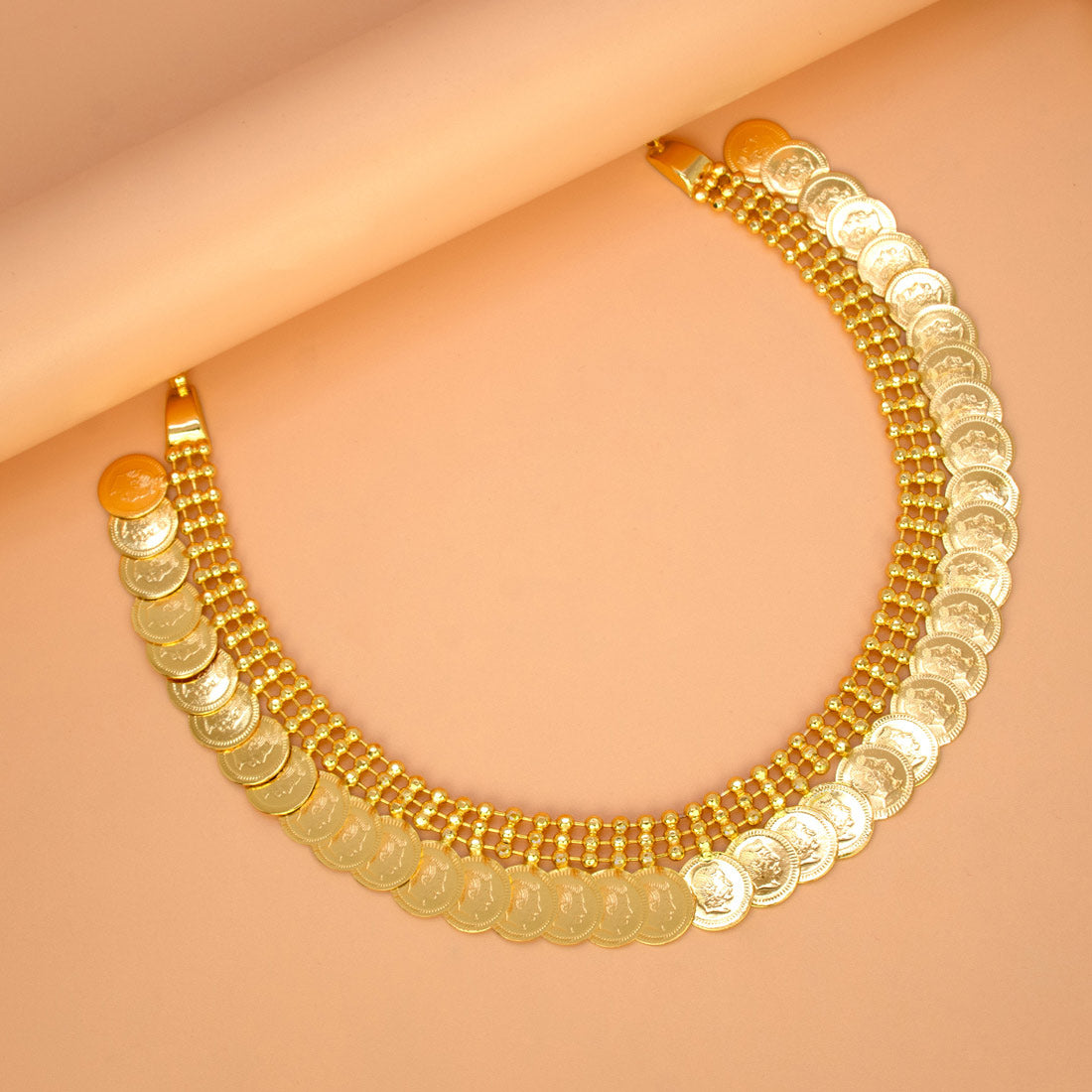 Add a touch of traditional elegance to your jewellery collection with this stunning Classic South Indian Gold Plated Head Kasu Necklace. Designed with beautifully crafted head engraved coins arranged in a classic kasumala pattern, this piece reflects rich South Indian heritage. The high-quality gold plating offers a radiant finish, making it an ideal choice for weddings, festive occasions, temple visits, and traditional functions. Perfectly complements sarees and ethnic outfits, enhancing your overall look with timeless charm.
