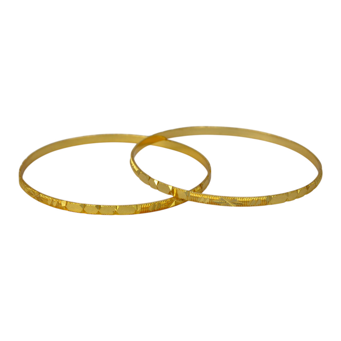 Add timeless elegance to your jewellery collection with these Contemporary Gold Plated Designer Cutting Bangles. Expertly crafted, the bangle features a brilliant diamond-cut design that sparkles with every movement. Its multi-pattern textured detailing enhances its charm, giving it a unique blend of sophistication and tradition.