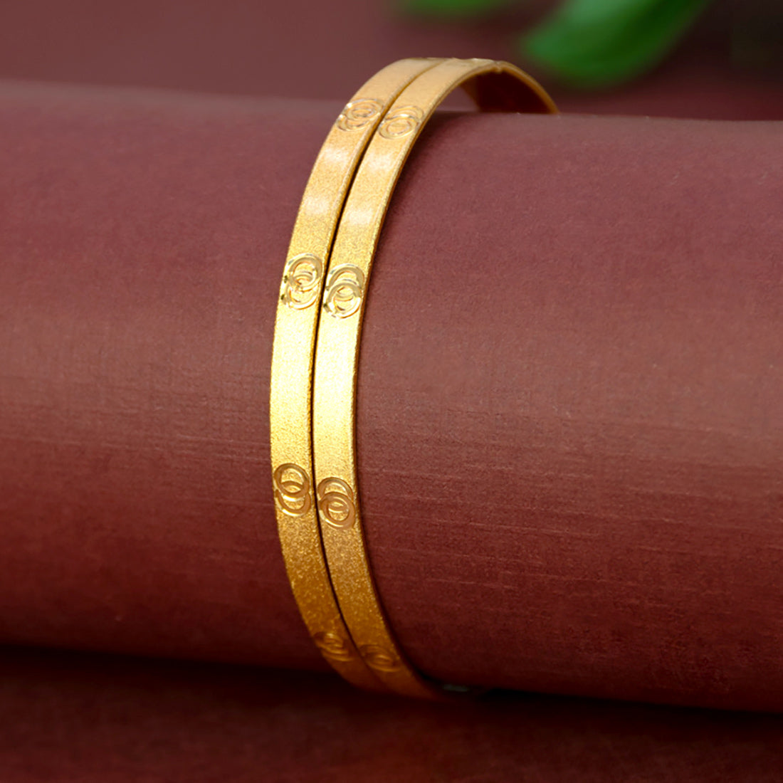 Elevate your jewellery collection with these Elegant Matte Gold-Plated Designer Bangles. Designed with a smooth finish and delicate patterns, these bangles beautifully combine simplicity and sophistication. Lightweight and comfortable to wear, they are suitable for daily use as well as special occasions. A versatile accessory that pairs effortlessly with both traditional and modern outfits, making it a perfect choice for personal wear or gifting.