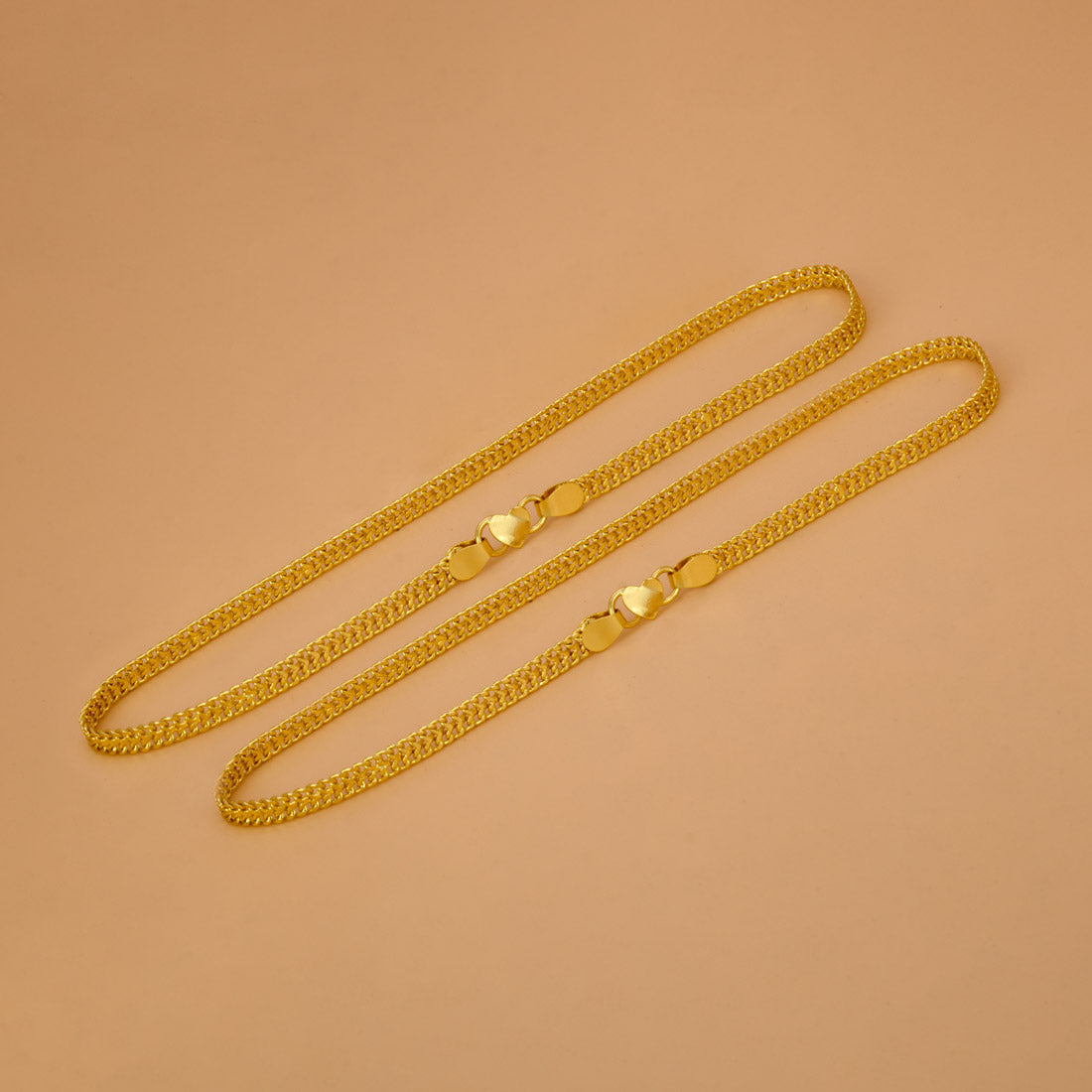 Elevate your ethnic ensemble with these exquisite Trendy Gold Plated Flat Double Link Anklets Payal, crafted to seamlessly blend tradition with contemporary style. Featuring a high-quality gold finish, these versatile payals complement both casual and formal wear—from everyday elegance to wedding celebrations. The flat link design ensures comfortable all-day wearability without compromising on sophistication. Ideal for women of all ages seeking a timeless accessory that transitions effortlessly from traditional attire to modern outfits, these anklets deliver authentic charm and lasting appeal for any occasion.